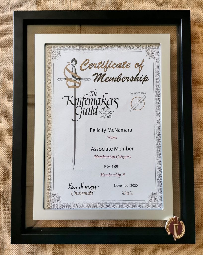 I was recently awarded an Associate Membership to the Knife Makers Guild of Southern Africa, of which I am very pleased and excited to be a part of.